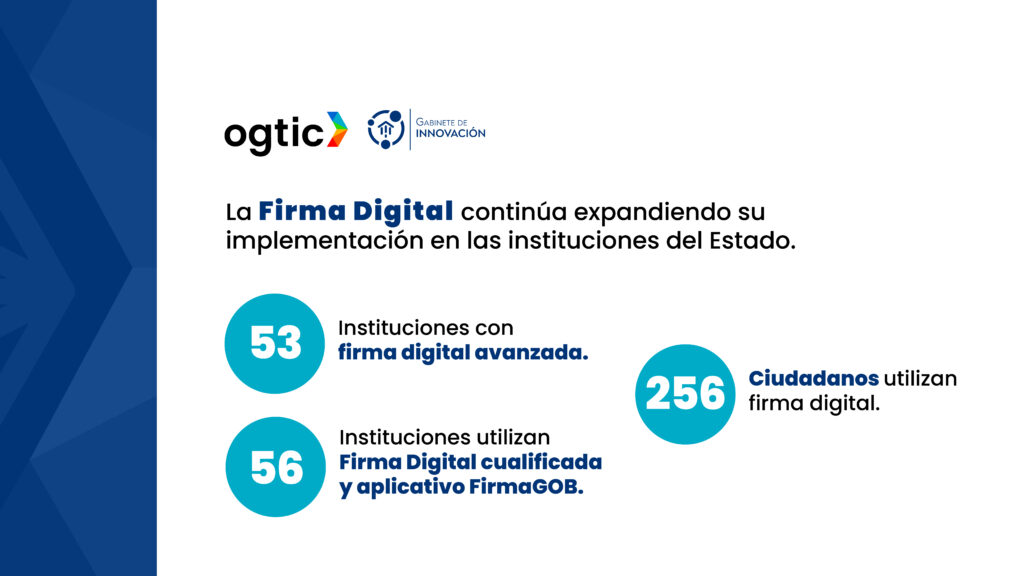 La plataforma “Portafirmas Gubernamental Firma GOB”, implementada por la OGTIC, es una herramienta clave en la gestión de documentos pendientes de firma digital. Esta permite realizar la firma electrónica de documentos desde un celular, a través de una aplicación móvil disponible para dispositivos con sistema Android y iOS. Además, facilita la definición de flujos de trabajo de firma documental y la conexión entre colaboradores que interactúen con archivos, según las necesidades de la institución.
