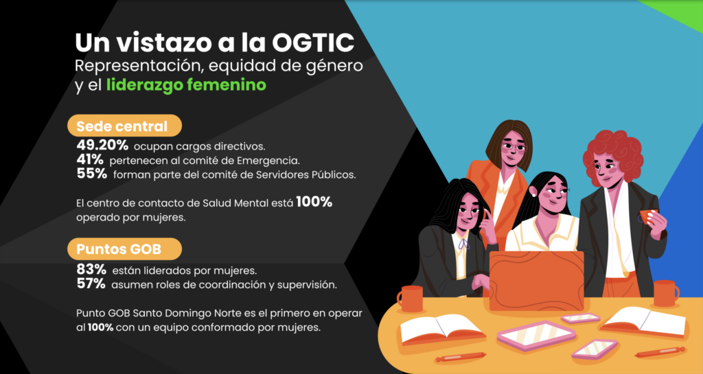 La participación activa de mujeres en papeles de liderazgo en la OGTIC es una prioridad, ya que comprendemos que la diversidad en los niveles ejecutivos enriquece nuestra perspectiva como institución, impulsa la toma de decisiones y establece un poderoso precedente para el servicio público y el sector tecnológico.