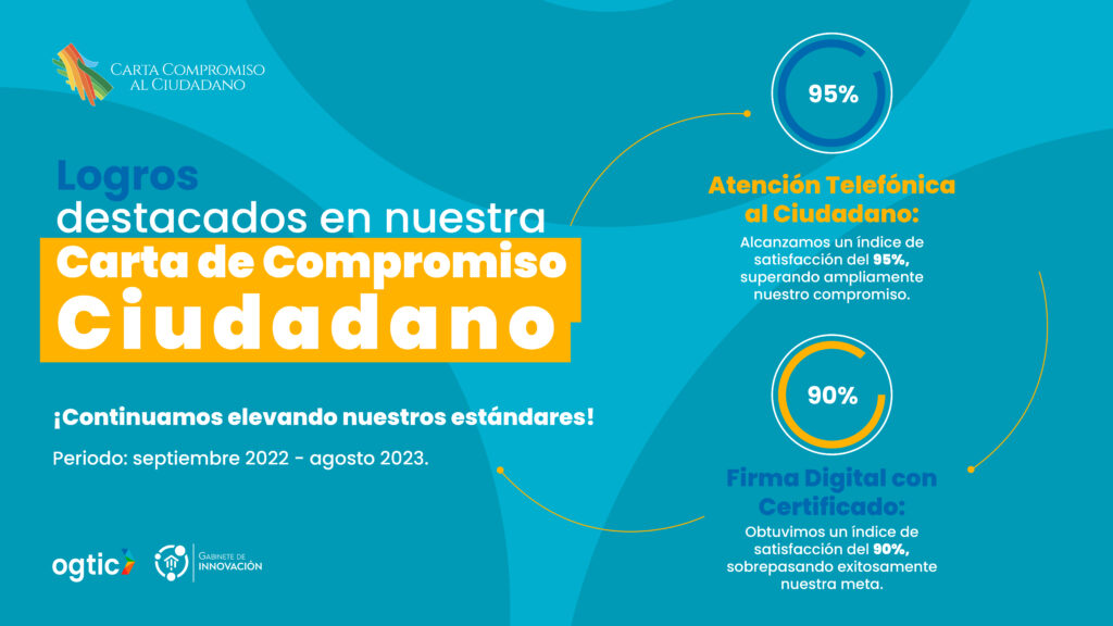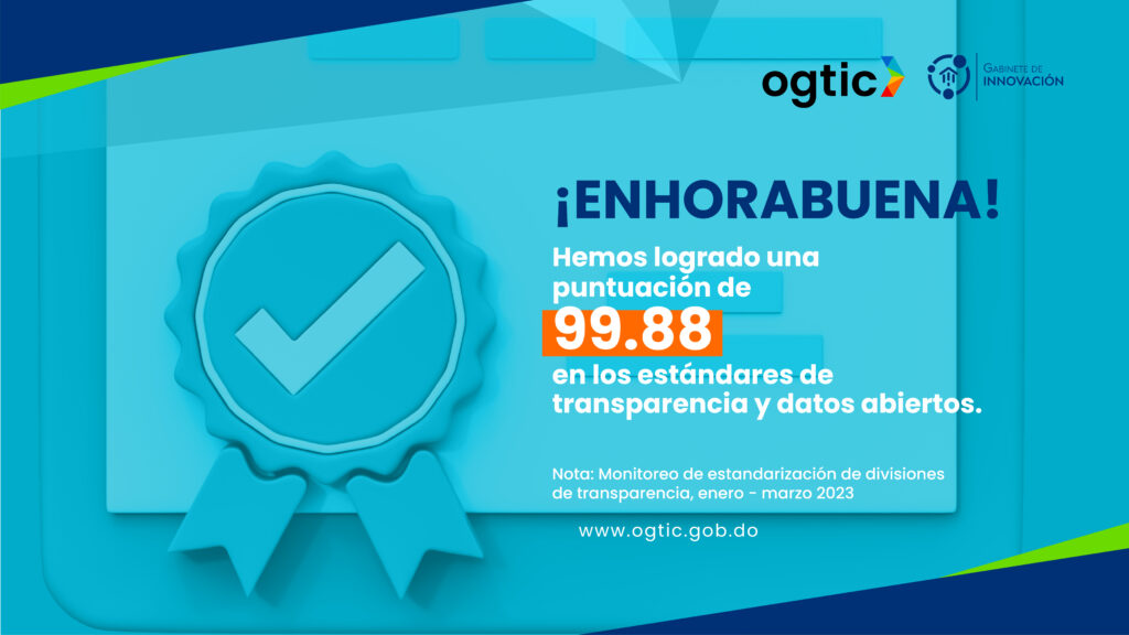 Bajo el lema “OGTIC es Servicio”, desde la Oficina de Acceso a la Información estamos cumpliendo. Durante estos 19 años hemos mantenido el nivel de cumplimiento de acceso a la información, a través del Índice de Transparencia, cumpliendo con lo establecido en la Resolución DIGEIG No. 002-2021, que crea el Portal Único de Transparencia y Establece las Políticas de Estandarización de la Divisiones de Transparencia y con la Ley de Libre Acceso a la Información Pública; Ley 200-04.