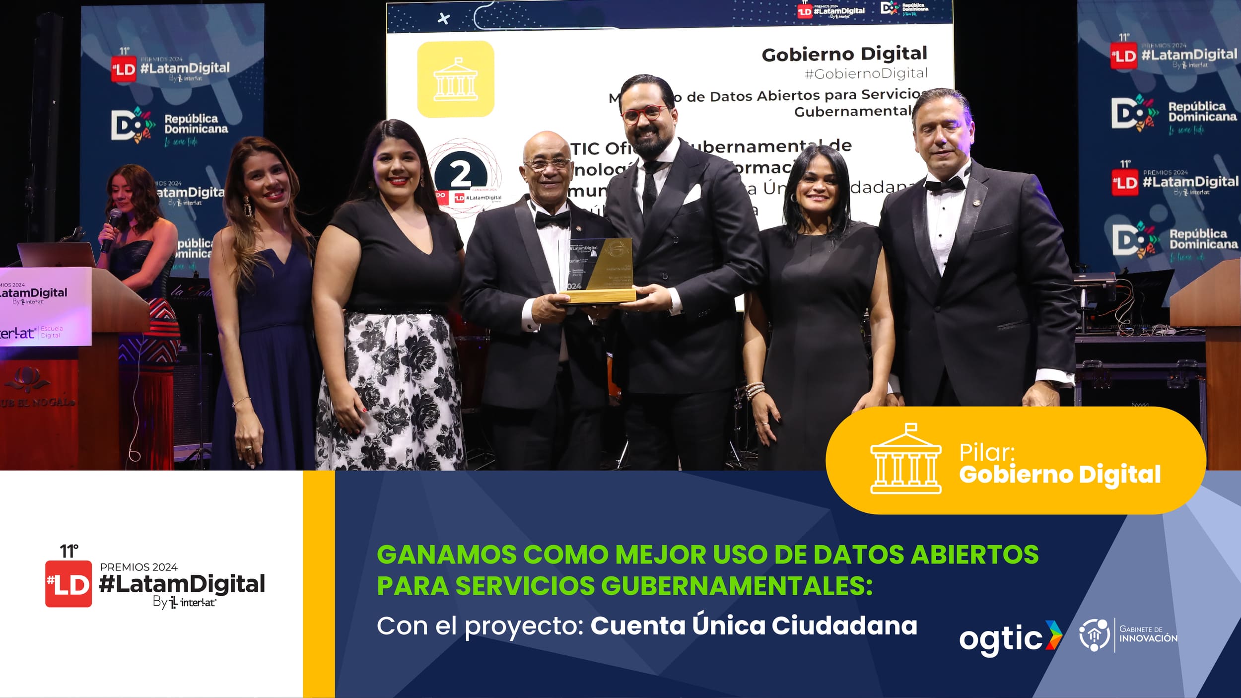 En la Oficina Gubernamental de Tecnologías de la Información y Comunicación (OGTIC), hemos marcado un precedente en nuestro camino hacia la conversión de República Dominicana en un país a prueba de futuro. En la reciente entrega de los premios #LatamDigital2024, nos alzamos con cinco estatuillas de las siete categorías en las que fuimos finalistas, consolidándonos como un referente en innovación y desarrollo digital en América Latina.