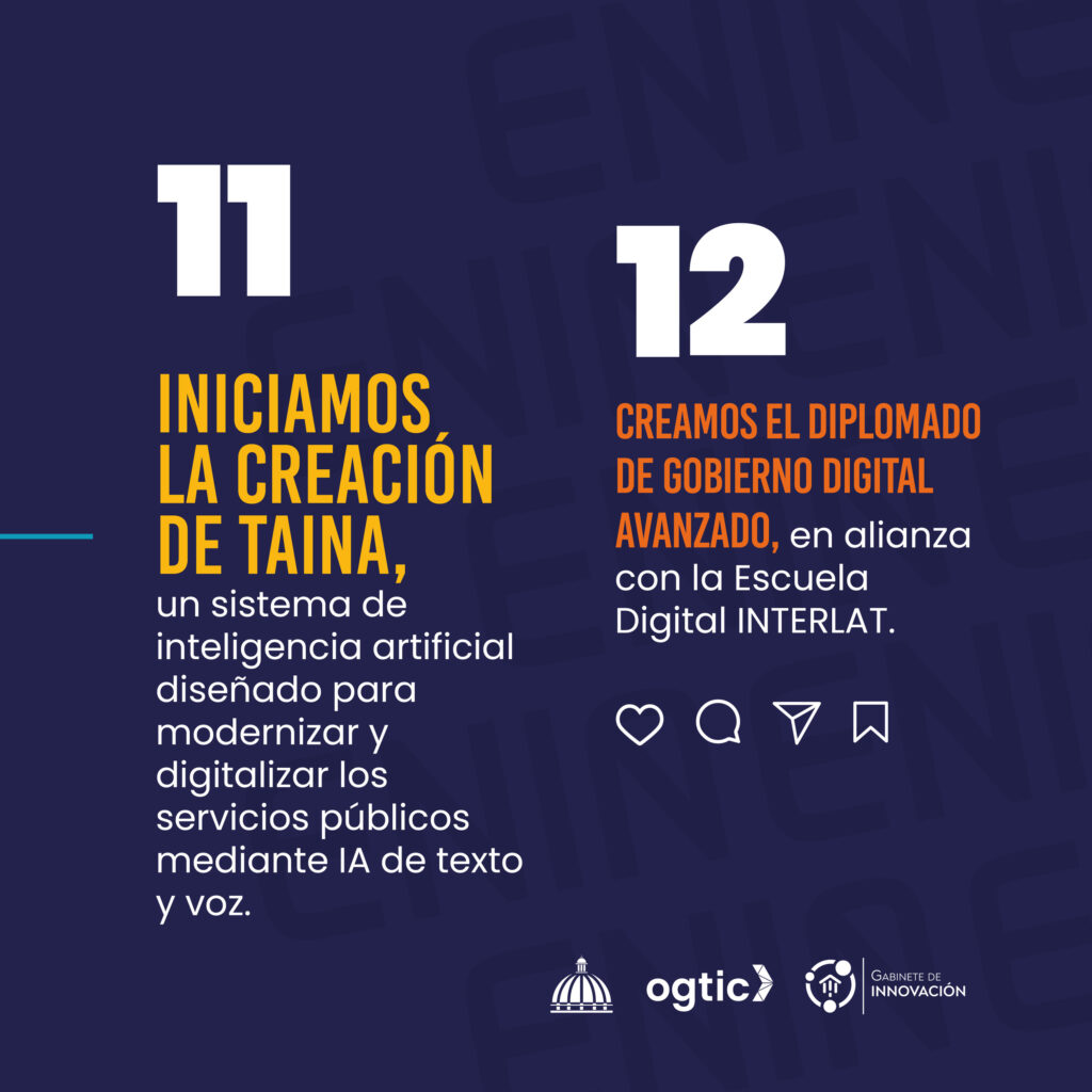 Dentro de los avances tecnológicos implementados, el desarrollo del sistema integral de IA TAINA ha sido crucial. Este sistema busca modernizar y digitalizar los servicios públicos mediante el uso de inteligencia artificial de texto y voz, mejorando tanto la eficiencia como la accesibilidad para los ciudadanos.