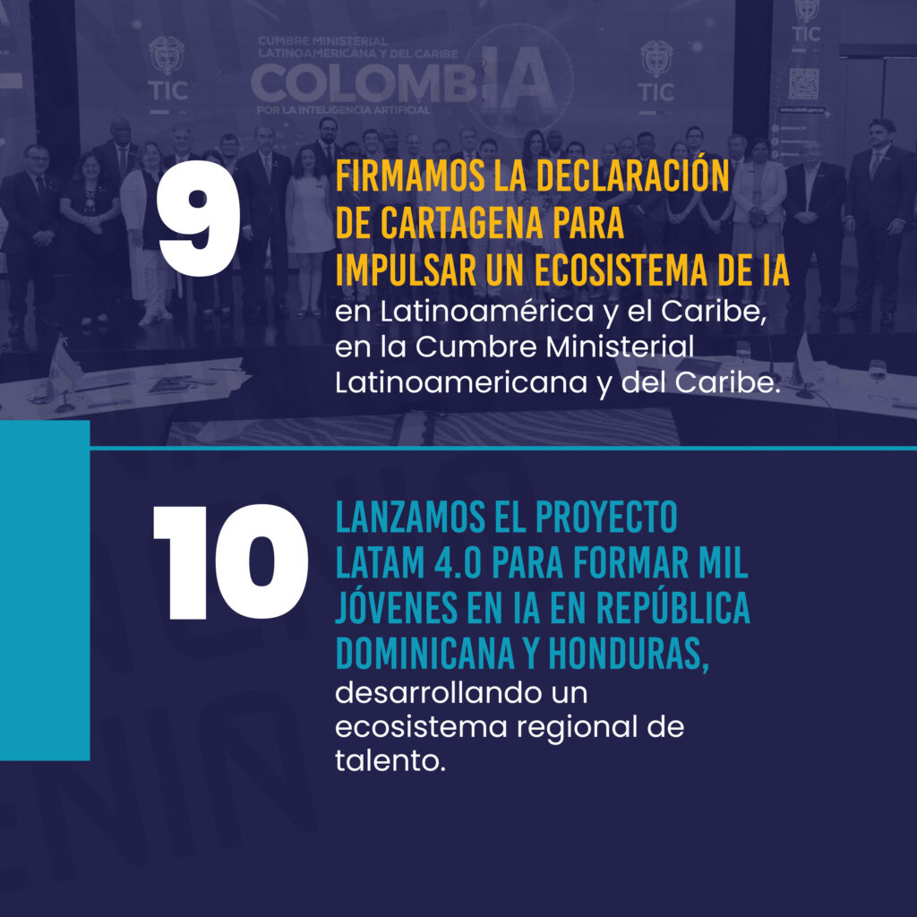 República Dominicana también ha sido protagonista en la construcción de acuerdos regionales, firmando la Declaración de Cartagena en la Cumbre Ministerial Latinoamericana y del Caribe por la IA: ColombIA. Este acuerdo refuerza nuestra apuesta por un ecosistema de IA que promueva la productividad, la eficiencia y el bienestar social, siempre bajo principios éticos.