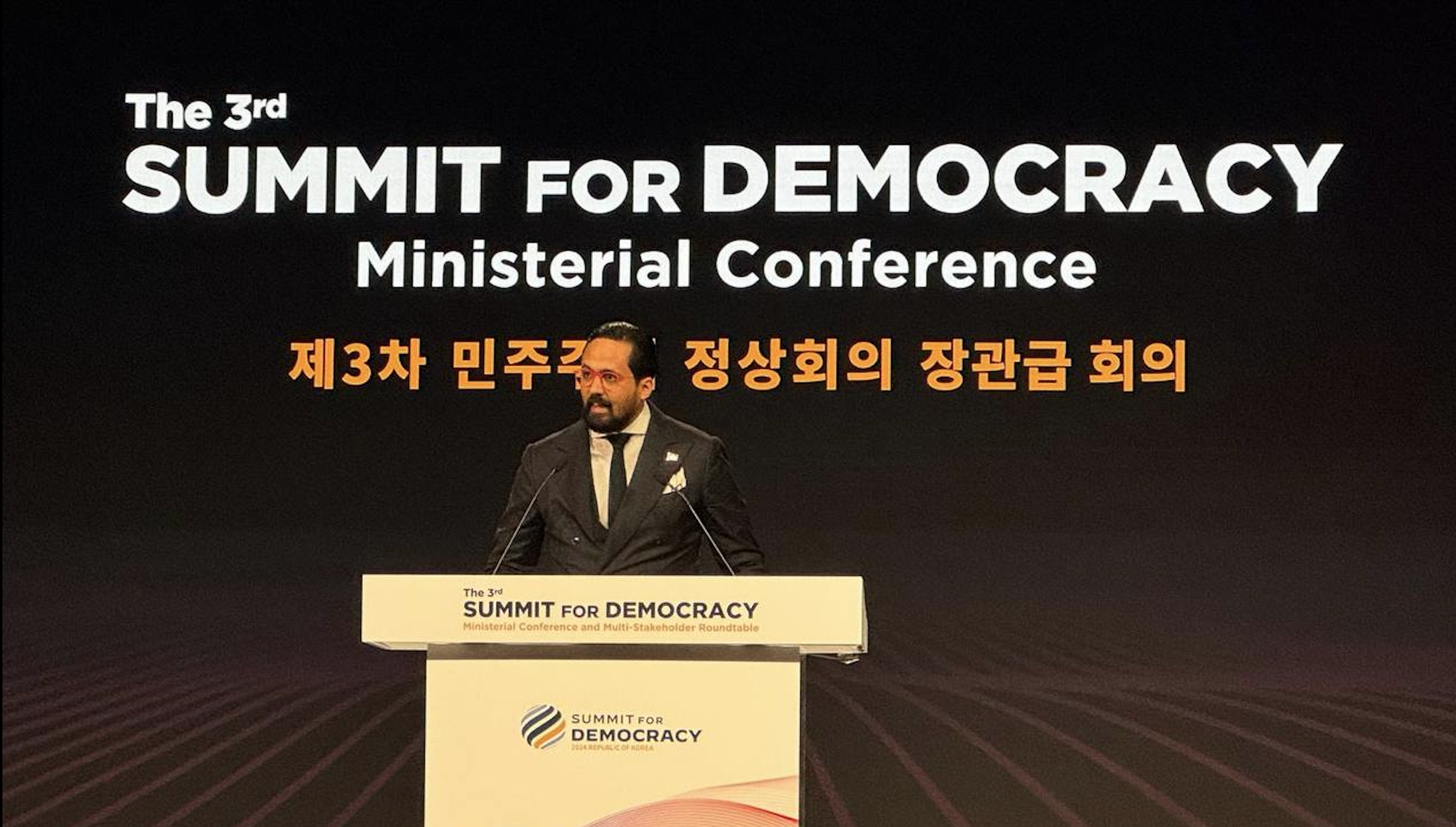Santo Domingo, miércoles 20 de marzo 2024.- Bartolomé Pujals, director general de la OGTIC y director ejecutivo del Gabinete de Innovación, participó como jefe de delegación en representación del Gobierno dominicano en la Tercera Cumbre por la Democracia: Inteligencia artificial, tecnología y democracia, democracia para las futuras generaciones” en Seúl, Corea del Sur, evento que reúne a los responsables gubernamentales y miembros de la sociedad civil para tratar temas sobre el retroceso democrático y las incidencias de las nuevas tecnologías en el mismo.