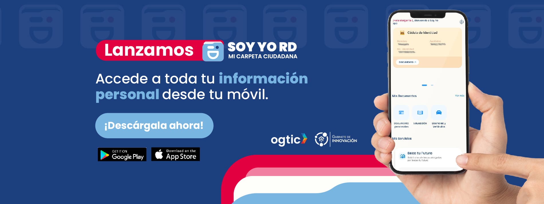 Santo Domingo, domingo 25 de agosto 2024.- La Oficina Gubernamental de Tecnologías de la Información y Comunicación (OGTIC) anuncia el lanzamiento de “Soy Yo RD: Mi Carpeta Ciudadana”, una innovadora aplicación que centraliza el acceso a la información personal de los ciudadanos, desde la comodidad de sus dispositivos móviles. Disponible para descargar en iOS y Android, esta herramienta pone el control de datos esenciales, al alcance de todos los dominicanos.